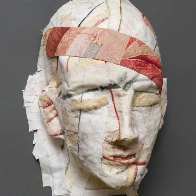Tête, 2015 Médium mixte sur carton marouflé sur aluminium 12 x 16.5 cm Une tête dans une tache. Je fouille la matière fluide à la recherche de traces. Le trait se dissout. Je le perds. La matière se fige doucement. Le visage prend forme. Inspirée par une foule. Fulgurance. Que des visages d’hommes. Puis je…