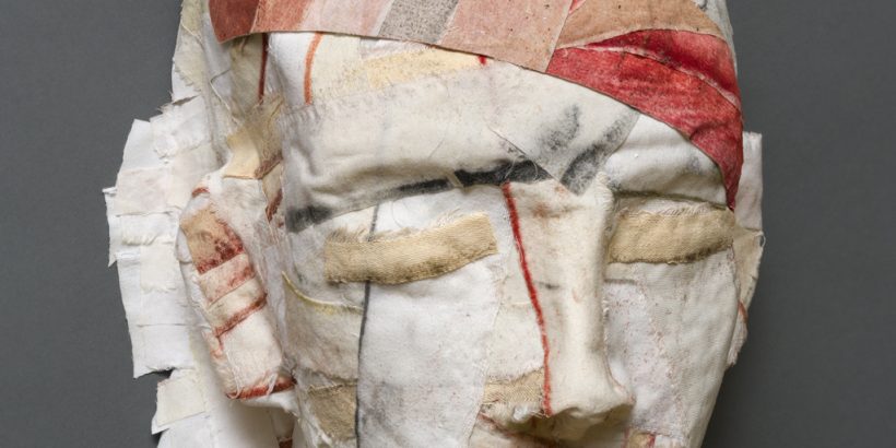 Un homme sur la ligne de partage, 2021 Tissu teinté, fil Visages et masques. Ils sont rassemblés par empreintes de couleur. Ils émergent d’un cadre, le traversent, le dépassent. Un regard omniprésent, des yeux posés partout. Aujourd’hui, ils sont dedans. La toile a disparu du plan. Débordée par la bouche, le menton, l’arcade sourcilière. Les…